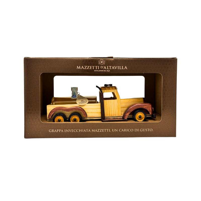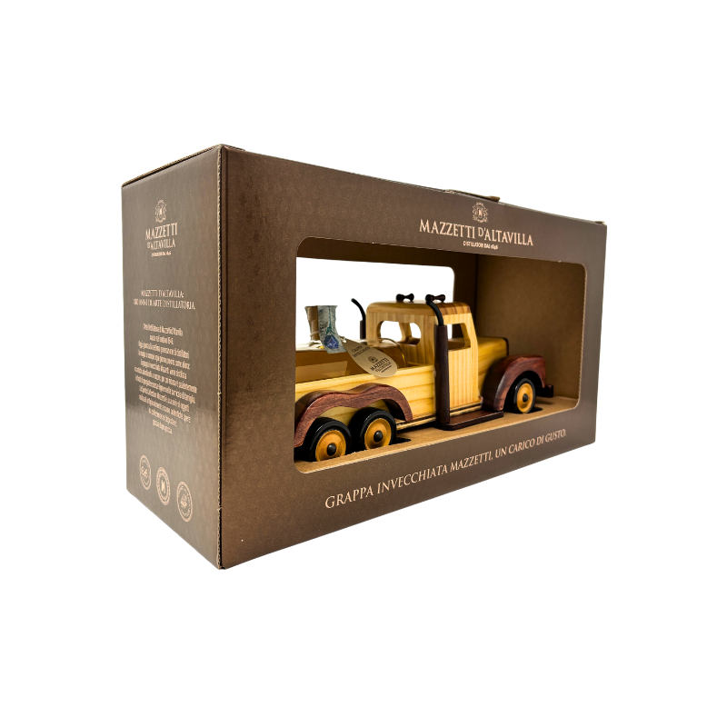 Un connubio perfetto tra gusto e creatività: la Grappa Invecchiata Mazzetti d’Altavilla – Camion si presenta in una confezione unica, realizzata a forma di autocarro in legno, simbolo di un “carico di gusto”. Il distillato, frutto della maestria Mazzetti d’Altavilla attiva dal 1846, regala un bouquet armonioso con note di vaniglia, miele e spezie dolci. Il gusto è pieno, rotondo e persistente, con un finale caldo e avvolgente che esprime eleganza e tradizione. Ideale come regalo originale e raffinato, questa edizione speciale unisce l’arte del legno alla qualità di una grappa d’eccellenza, perfetta per celebrare momenti speciali con un tocco di stile e autenticità.