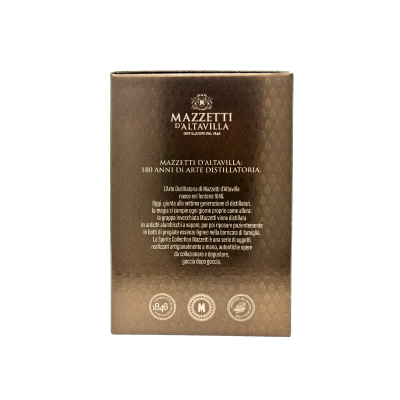 La Grappa Invecchiata Mazzetti d’Altavilla offre un profilo aromatico raffinato, con note calde di vaniglia, miele e legni pregiati. Al palato risulta morbida e avvolgente, con sfumature di frutta secca e spezie dolci che regalano un finale armonioso, persistente e di grande eleganza.