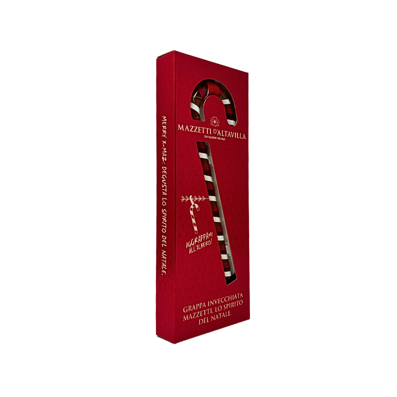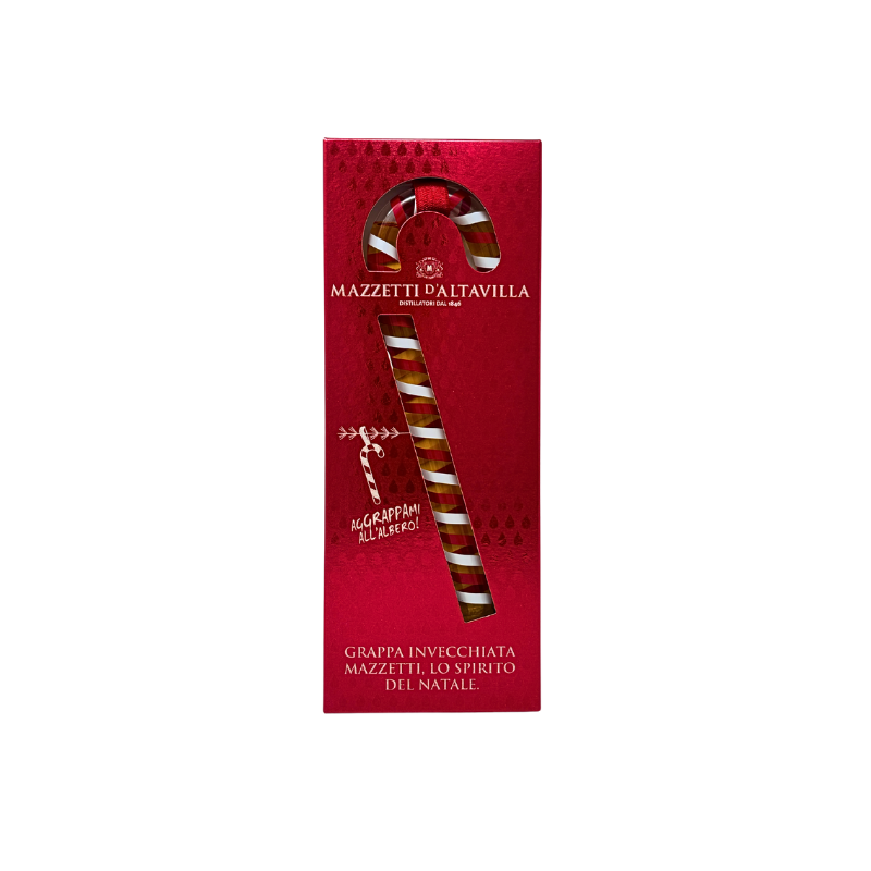La Grappa Invecchiata Mazzetti d’Altavilla – Bastoncino di Natale è un piccolo capolavoro che racchiude tutto lo spirito delle feste. Presentata in una confezione rossa brillante, custodisce una bottiglia a forma di candy cane, pensata per essere appesa all’albero come originale decorazione. Il distillato, firmato dalla storica distilleria Mazzetti d’Altavilla (dal 1846), sprigiona profumi intensi e caldi di vaniglia, miele e legni nobili, con un gusto morbido e avvolgente che conquista ogni palato. Un’idea regalo simpatica e raffinata, perfetta per sorprendere con un tocco di creatività e tradizione. Un simbolo autentico di convivialità, da condividere e gustare durante le festività natalizie.