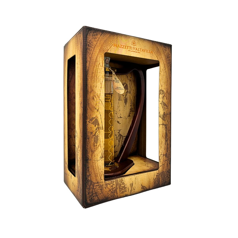 La Grappa Invecchiata Mazzetti d’Altavilla – Arpa è un raffinato connubio tra eleganza e maestria artigianale. Racchiusa in una bottiglia dal design esclusivo a forma di arpa, simbolo di armonia e delicatezza, custodisce una grappa dal profilo aromatico intenso e avvolgente. Le note di vaniglia, miele e legni pregiati si fondono in un bouquet equilibrato, mentre al palato la struttura morbida e persistente regala sensazioni calde e vellutate. Frutto della sapiente tradizione Mazzetti d’Altavilla, attiva dal 1846, questa edizione rappresenta un omaggio all’arte e alla musica del gusto. Perfetta come regalo di prestigio, coniuga fascino estetico e qualità superiore in un’unica, armoniosa esperienza sensoriale.