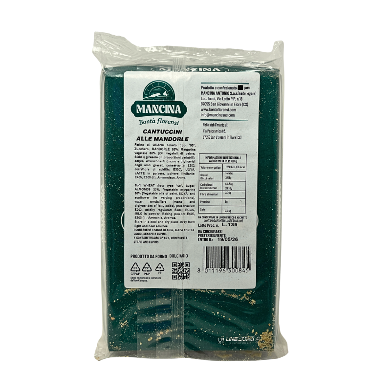 I Cantuccini alle Mandorle Mancina sono un dolce croccante e profumato della tradizione dolciaria calabrese, ispirato all’antica arte dei biscotti secchi da forno. Realizzati con ingredienti semplici e genuini – farina, uova, zucchero e mandorle selezionate – rappresentano l’unione perfetta tra artigianalità e gusto autentico. Nati come dolce da conservare a lungo, i cantuccini venivano preparati in occasione delle festività o come dono per ospiti e viaggiatori. Oggi conservano tutto il fascino della ricetta tradizionale: croccanti al morso e ricchi di sapore, sprigionano l’aroma tostato delle mandorle e una dolcezza equilibrata. Perfetti da gustare da soli o immersi in un bicchiere di vino passito o liquore dolce, i Cantuccini Mancina raccontano la semplicità e la bontà della pasticceria calabrese più genuina.
