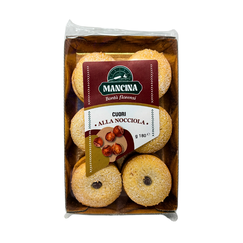 I Cuori alla Nocciola Mancina offrono un gusto delicato e avvolgente, dove la friabilità della frolla incontra la morbidezza e l’aroma intenso della crema alla nocciola. Perfetti da accompagnare con caffè, tè, latte caldo o cioccolata, sono ideali per una pausa dolce e raffinata in ogni momento della giornata.