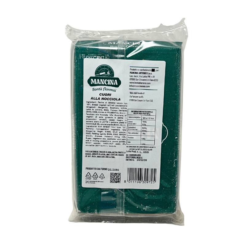 I Cuori alla Nocciola Mancina rappresentano una delle espressioni più golose della tradizione dolciaria calabrese. Realizzati con ingredienti genuini e selezionati, racchiudono tutta la fragranza della pasta frolla artigianale e la cremosità del ripieno alla nocciola, che conquista con il suo profumo intenso e il gusto vellutato. La loro forma a cuore richiama l’affetto e la convivialità tipica delle feste e dei momenti di condivisione familiare. Nati dalla passione per la pasticceria tradizionale, questi biscotti sono un perfetto equilibrio tra semplicità e bontà autentica. Croccanti all’esterno e morbidi all’interno, sprigionano un aroma irresistibile che evoca i sapori di un tempo. Ideali da gustare con tè, caffè o cioccolata calda, i Cuori alla Nocciola Mancina sono un dolce simbolo di calore, amore e genuinità calabrese.