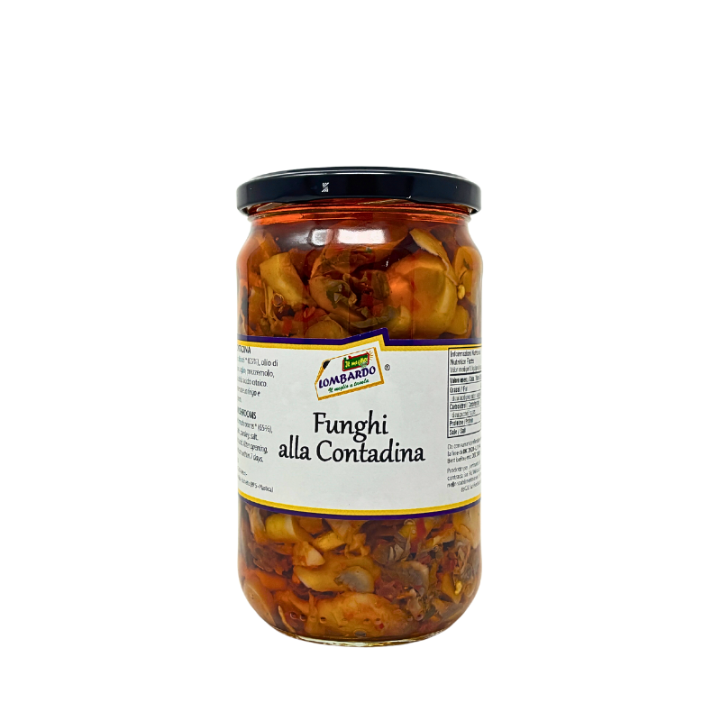 I Funghi alla Contadina racchiudono tutto il sapore autentico delle montagne calabresi, dove la natura incontaminata dona profumi e aromi unici. Preparati secondo un’antica ricetta della tradizione contadina, combinano funghi freschi selezionati con olio d’oliva, peperoni, erbe aromatiche e spezie mediterranee, per un risultato ricco e genuino. Questa specialità nasce dal desiderio di conservare i prodotti della terra, proprio come facevano un tempo le famiglie calabresi, che ne custodivano i sapori per l’inverno. Il gusto è armonioso e deciso, con note leggermente piccanti che esaltano il carattere del piatto. Perfetti come antipasto rustico, per accompagnare carni arrosto, formaggi stagionati o bruschette, i Funghi alla Contadina Lombardo portano in tavola l’essenza della cucina calabrese: semplice, sincera e profondamente legata alla tradizione.