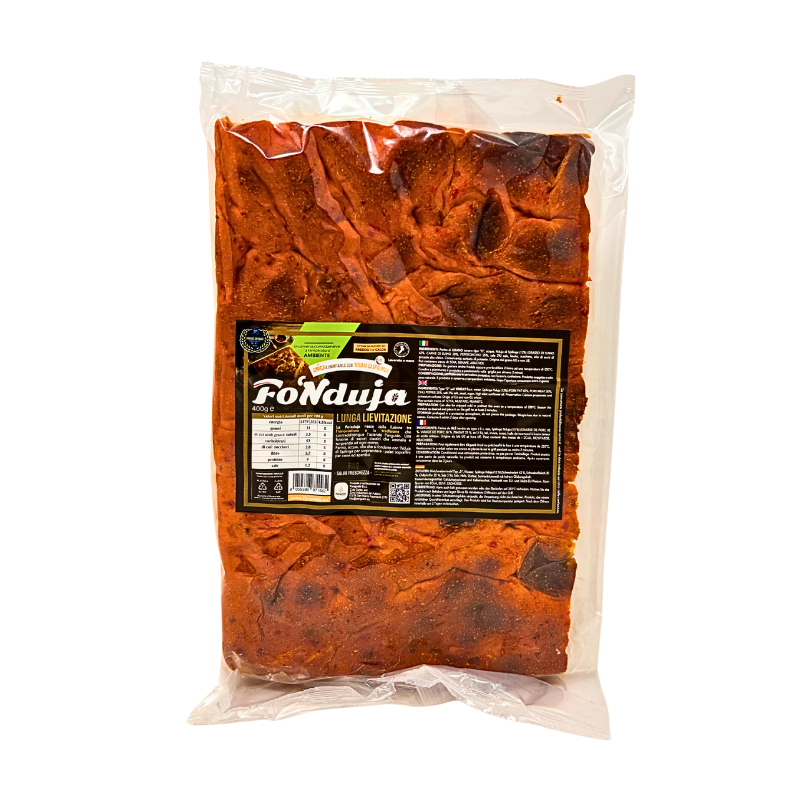 La FoNduja è una focaccia calabrese dal carattere forte e autentico, nata dall’incontro tra la tradizione panaria del Sud e l’inconfondibile gusto della ’nduja di Spilinga, il salume spalmabile simbolo della Calabria. Realizzata con ingredienti selezionati e a lunga lievitazione naturale, questa specialità racchiude tutto il calore e la passione della gastronomia calabrese.
