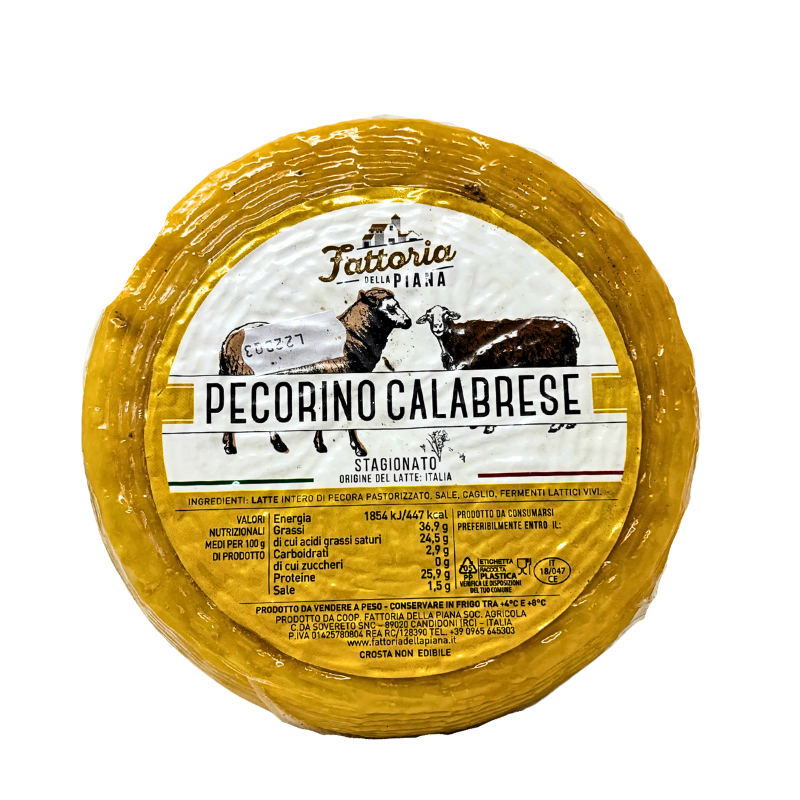 Il Pecorino Calabrese stagionato della Fattoria della Piana è un formaggio che racchiude l’anima autentica della Calabria, terra di sapori decisi e tradizioni secolari. Prodotto con latte intero di pecora pastorizzato, conserva tutto il gusto intenso e ricco del latte ovino, esaltato da una lenta stagionatura che ne affina aroma e consistenza.
