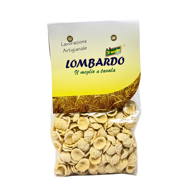 Le orecchiette artigianali Lombardo rappresentano uno dei formati di pasta più amati e iconici della tradizione del Sud Italia. Realizzate con semola di grano duro di alta qualità e trafilate al bronzo, conservano quella superficie ruvida e porosa che permette di trattenere al meglio i condimenti, regalando al palato un gusto autentico e genuino.