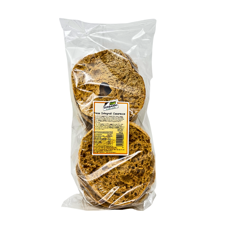 Le Frese Integrali Casarecce Lombardo racchiudono tutto il sapore autentico della tradizione calabrese, nata nei forni a legna delle case contadine, dove il pane veniva cotto due volte per garantirne la lunga conservazione. Realizzate con farina integrale di grano duro, mantengono intatti tutti i nutrienti e le fibre, offrendo un gusto rustico e genuino, con una croccantezza irresistibile.