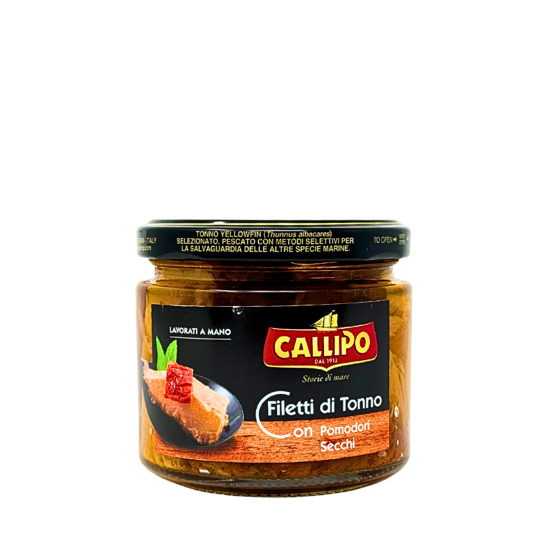 I Filetti di Tonno Callipo con Pomodori Secchi rappresentano l’incontro perfetto tra il mare e la terra di Calabria. Callipo, storica azienda fondata nel 1913 a Pizzo, è simbolo di qualità e tradizione artigianale: ogni filetto è lavorato a mano, come vuole la migliore cultura conserviera calabrese.