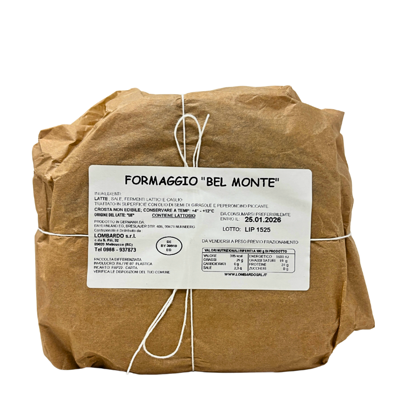 Il Formaggio Bel Monte è un’eccellenza calabrese che unisce tradizione e gusto autentico, incarnando i sapori forti e genuini della nostra terra. Prodotto con latte vaccino fresco e trattato in superficie con olio e peperoncino piccante, rappresenta una fusione perfetta tra la morbidezza del latte e il carattere deciso tipico della Calabria.