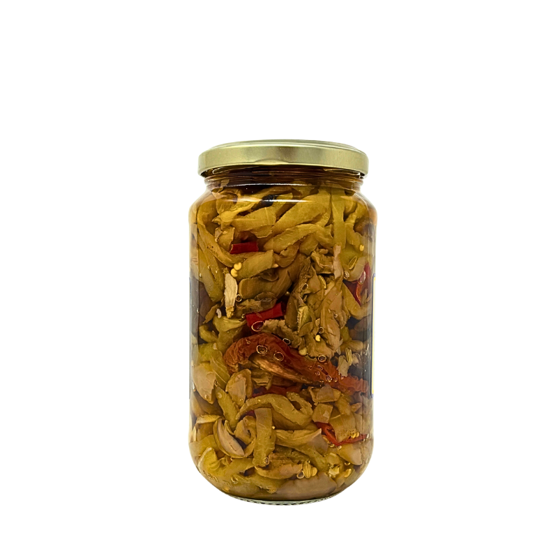 Le Melanzane alla Calabrese rappresentano un classico intramontabile della tradizione gastronomica del Sud Italia. Preparato secondo antiche ricette contadine, questo prodotto racchiude i sapori autentici della Calabria, terra di sole, di sapori forti e genuini. Le melanzane vengono selezionate con cura, tagliate a listarelle sottili e conservate in olio d’oliva, insieme a spezie e aromi mediterranei che ne esaltano il gusto deciso e fragrante. Il risultato è un prodotto dal sapore pieno, leggermente piccante e irresistibilmente appetitoso. Da sempre protagoniste delle tavole calabresi, le Melanzane alla Calabrese sono perfette come antipasto, contorno o condimento per panini e bruschette, ma anche per arricchire piatti di carne e insalate miste. Ogni boccone racconta la passione e la sapienza di una tradizione culinaria che fa dell’autenticità e del gusto le sue firme distintive.