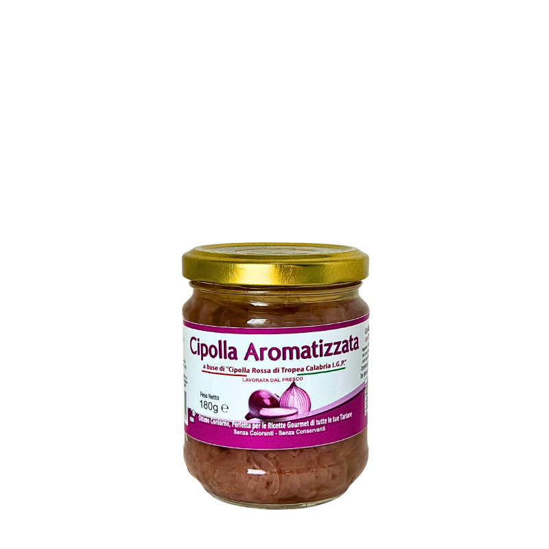 La Cipolla Aromatizzata Lombardo, realizzata con la pregiata Cipolla Rossa di Tropea Calabria I.G.P., è una vera eccellenza della gastronomia calabrese. Coltivata sulle coste assolate e ventilate del Tirreno, questa cipolla è famosa per la sua dolcezza naturale e il profumo inconfondibile. Lavorata dal fresco secondo metodi tradizionali, viene delicatamente aromatizzata per esaltare il suo gusto equilibrato, dolce ma intenso, capace di arricchire ogni piatto. È un condimento versatile, perfetto per antipasti, tartare di carne o pesce, formaggi stagionati e secondi gourmet. Nata dalla passione per la tradizione e dall’attenzione alla qualità, la Cipolla Aromatizzata Lombardo racchiude in sé l’anima autentica della Calabria, unendo sapori antichi e tecniche moderne per offrire un prodotto genuino, raffinato e irresistibilmente mediterraneo.